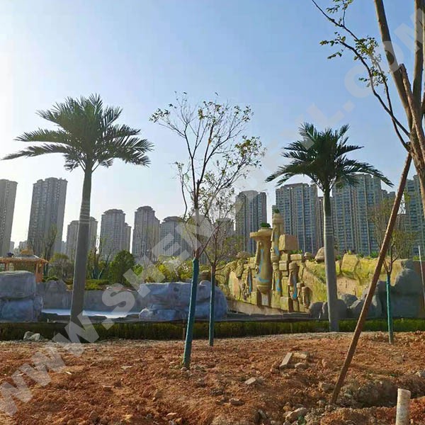 仿真椰子樹通常用于不適合種植椰子樹的地區,它們樹干光滑,接近筆直,樹葉從樹頂“炸”出來,活像過年放的禮花。酒店、景點、游樂場、社區等地方用來營造南亞熱帶風情是再適合不過了。